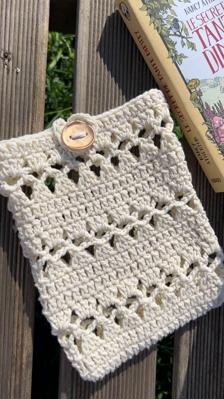 Protégez vos livres avec cette pochette en crochet simple, élégante et pratique. Légère et stylée, elle est idéale pour transporter vos lectures tout en ajoutant une touche artisanale et cosy à votre quotidien.