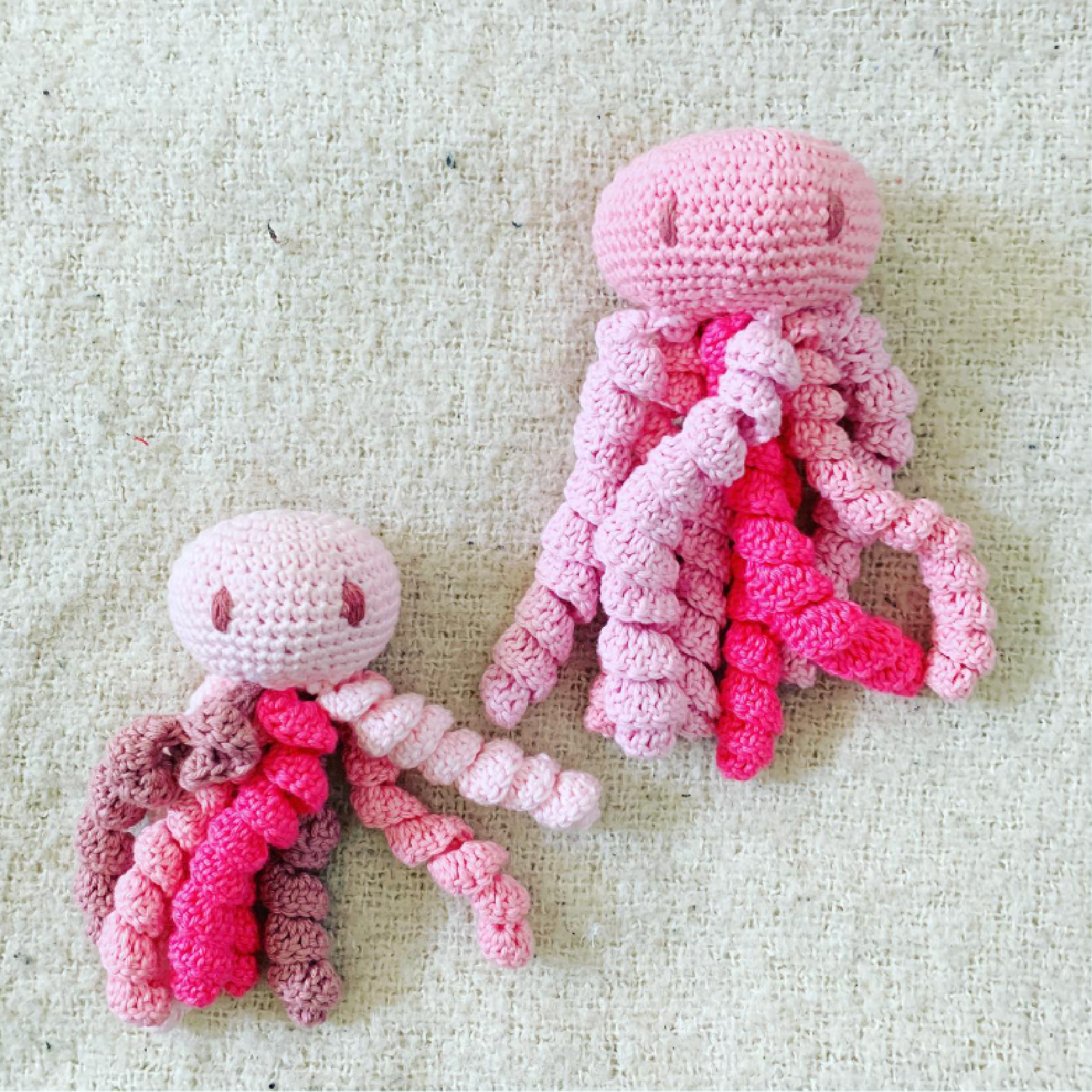 Un doudou réconfortant aux tentacules douces, parfait pour apaiser bébé. Fait main et personnalisable, il deviendra son compagnon préféré.
